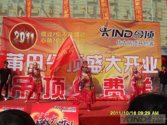 10月15日,在这个阳光明媚的日子里,锣鼓喧天,鞭炮齐鸣,红旗招展,人山人海,莆田今顶在众人期盼下隆重开业了。今顶吊顶作为行业中的领先品牌,始终坚持“以不同,创造不凡”的企业核心理念,把艺术、设计和创新奉为品牌精髓,不断缔造经典,博得广大消费者的一致好评。