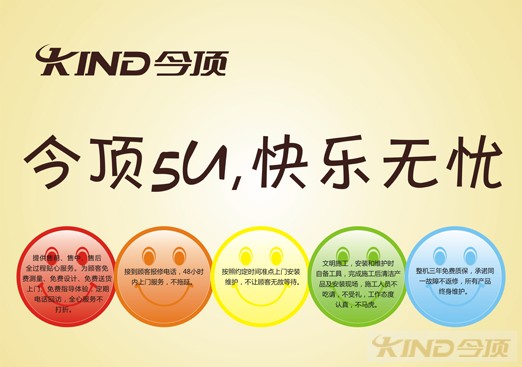 自今顶公司创建以来,就始终坚持“诚挚服务,永不打折”的服务理念,为消费者提供至上的销售服务,获得全国广大业主的一致好评。随着市场的发展,今顶集成吊顶也在不断地优化服务系统,以保障消费者利益最大化,于是在2012年315期间,重磅推出更高效、更快捷、更全面的服务体系—“今顶5U服务体系”。