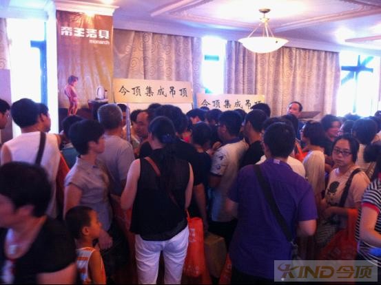 本次活动,金华今顶不喊空口号,不做虚文章,将用一系列超值优惠活动来回馈一直厚爱今顶品牌的新老客户,让广大市民在此炎炎夏日里能感受到今顶高品质吊顶所带来的尊贵生活享受!因此次活动促销力度空前之大,影响范围极其广泛,深受当地各大媒体网络和家装协分部门的高度关注,活动当天,金华今顶延续以往的强势劲头再现火爆签单场景,最后的限时秒杀更是吸引络绎不绝的消费者前来疯狂抢购!