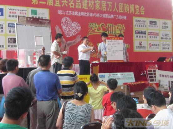 8月12日,由宜兴今顶牵头组织当地数十家建材知名品牌共同承办的“爱心助学,第二届宜兴名品建材家居团购博览会”为主题的大型活动,在当地人力资源市场内如期开幕。本次爱心,爱家联盟在行动活动,还特邀浙江首席金牌砍价师莅临现场与各大厂家代表进行互动砍价,活动当日,宜兴今顶为了让当地的贫困学子拥有更多的爱心助学金,特推出数款精美绝伦的经典套餐组合越低折扣以及一系列超值单品以前所未有的震撼价疯狂让利给广大消费者。