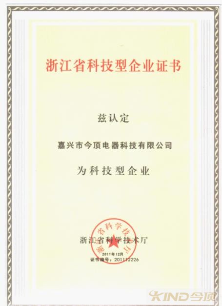 近日,经浙江省科学技术厅会同省级有关部门对省科技型企业认定的相关审核:嘉兴市今顶电器科技有限公司被正式认定为浙江省科技型企业,并收到由浙江省科学技术厅颁发的《浙江省科技型企业》荣誉证书。