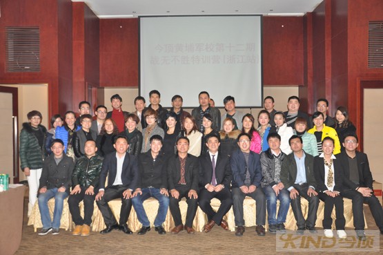 2013年3月27日“今顶黄埔军校战无不胜特训营第十二期”在今顶公司总部,浙江省嘉兴市召开。本次培训会汇集了今顶浙江战区及周边省市经销商、店长、导购、今顶浙江战区团队、今顶虎豹组等成员,培训工作由今顶公司营销中心担任,营销总监任授课教官。这次针对特训营的培训课程安排了《今顶战无不胜赢利模式四部曲》、《胜者为王—今顶终端导购博弈指引》、《战无不胜—今顶产品策略及系统性卖点话术指引》等内容。