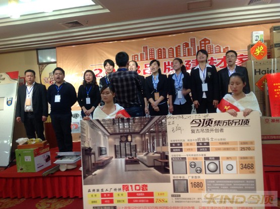 在这次品牌联盟会上砍价会现场,株洲今顶携“今顶,复古吊顶开创者”的品牌升级理念,以及“今顶2013新品”亮相于这次“2013年株洲十强品牌联盟工厂直供会”。同时,在本次品牌联盟会上株洲今顶也凭借自身的努力取得了骄人的成绩!