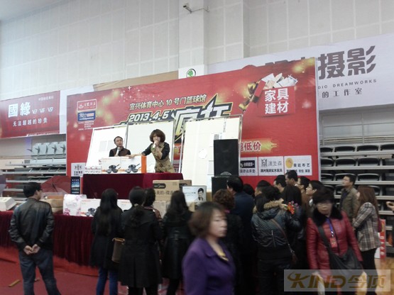 2013年4月5日由美凯龙爱家联盟、宜兴房产超市网、魅力团购网主办,315消费者协会监督的“大牌也疯狂”家居建材砍价会在宜兴体育中心举行。宜兴今顶携手王者陶瓷、菲林格尔地板、至乐原木门、朗斯淋浴房、席码整体卫浴、劳卡衣柜、普乐美水槽、美国舒达床垫、蓝谷智能厨房、澳美森澳洲海派实木家具、豪廷布艺同参加了本次活动。