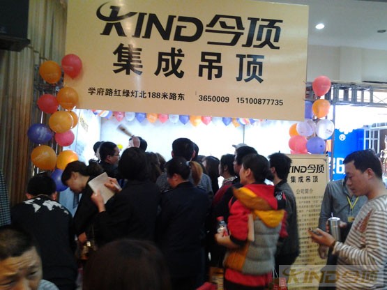 今顶复古吊顶在2013的五一,上演了全国火爆销售的场面。在2013年4月30日,及5月1日各地今顶以各种不同形式开展终端销售。河北河间,今顶复古吊顶火爆场面掠影。