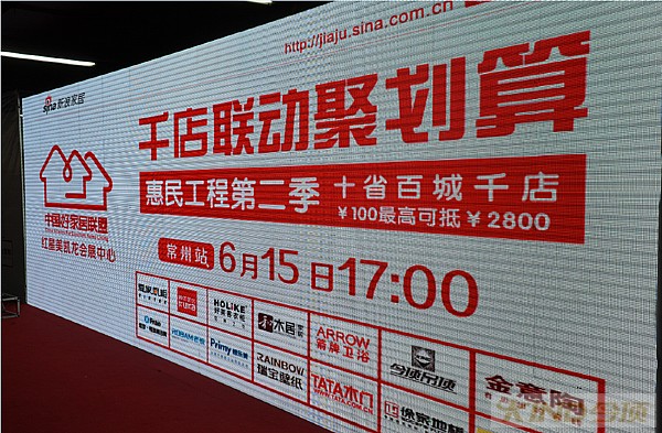 2013年6月15日下午17:00,由TATA木门、瑞宝壁纸、今顶复古集成吊顶、意风家具、顾家家居、好莱客衣柜等十二家品牌组成的江苏常州新浪中国好家居,在红星美凯龙商场火爆举行,据初步统计共有1000余户业主到达现场,17:00-20:00,常州新浪中国好家居为全市人民奉献了一场精彩的优惠夜宴。短短三个小时,常州新浪好家居联盟共签单1700余单,其中今顶复古集成吊顶狂揽209单。本次活动还特意邀请常州广播电台著名主持人现场主持,常州电视台、常州晚报、365地产家居网等各大媒体纷纷到场采访。活动现场通过厂家经理宣读工厂价格密函、现场产品演示、现金抽奖、100抵2400元、工厂直供等各项优惠措施,给常州广大业主送去了实实在在的优惠!