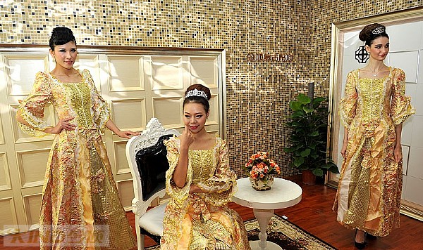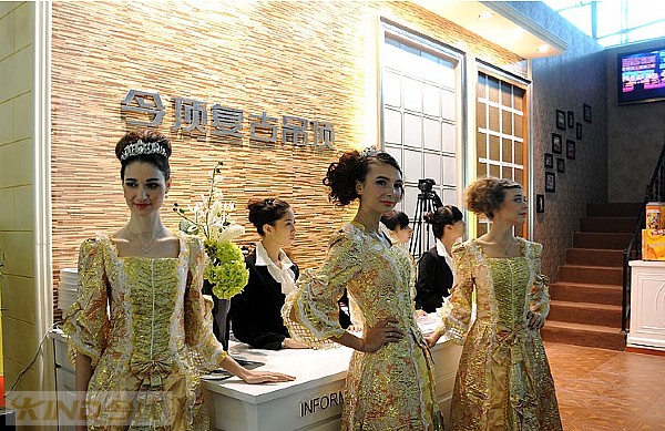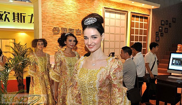 在广博会现场,8位名模身着复古服饰盛装出席。他们或在样板间依产品而靠,或在凯旋门前威武而立,并不时集体进行产品展示秀,他们与今顶复古集成吊顶的展馆、产品融为一体,亦动亦静的诠释着今顶复古集成吊顶的复古风尚。惊艳的气质、华丽的装束、优雅的动作,吸引了大批参观人士驻足观看。为今顶复古集成吊顶本次展会的成功举行起到了一定的推动作用!