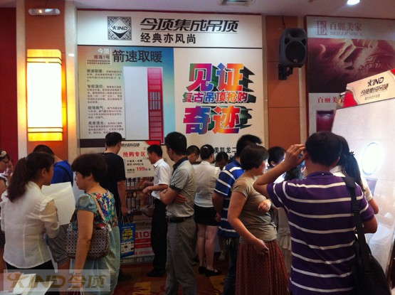 广东中山,中山今顶参加了当地家居品牌团购会,作为行业内较附盛名的今顶复古集成吊顶在每次亮相都给广大业主眼前一亮的感觉,这次在中山也一样,只是中山今顶选择了一种优雅婉约的方式,这使得当天的中山业主立即感受到了今顶品牌那与众不同超凡气质,这一气质吸引了大量的中山业主。