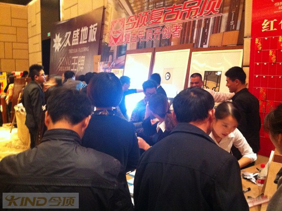 这次在千岛湖超级团的举办中有很多品牌为了答谢业主厚爱都做了充分准备。今顶也为了答谢业主准备了红包墙、签单礼等礼物。团购开始之后业主们就在各个品牌的展位上穿梭,今顶展位在展位上为业主准备了大量的对比实物、剖解产品、产品部件等物品,目的就是为了业主们能更加深刻、直观了解今顶产品的优质品质!在千岛湖,今顶复古吊顶一直给消费者高端品牌的形象,这一次千岛湖展位也为现场业主出了众多今顶不同风格的产品式样,以便消费者能在视觉上看到今顶那不同寻常的美!