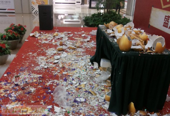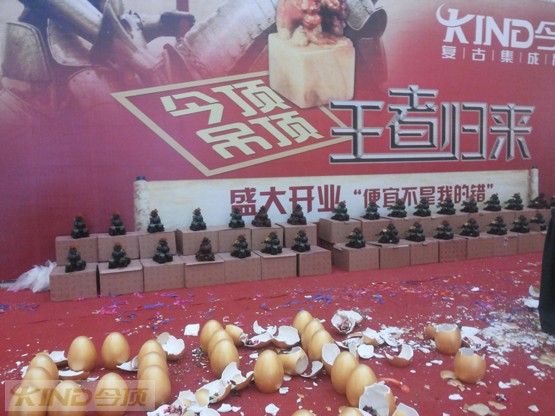 镇江今顶在开业当天为将要到场签单业主准备了充足的礼物及各种奖励。在今顶盛装开业的形象墙前,今顶为业主准备了上百的待砸金蛋,这些待砸金蛋在“今顶·王者归来”的形象墙前显得甚为耀眼。经过镇江业主的“不懈努力”百余个为业主签单准备的金蛋被砸的“一片狼藉”,这一场面足以说明镇江业主对今顶复古吊顶以及这个品牌的热爱!