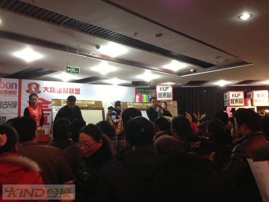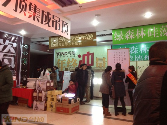 2013年,淮南最大让利建材家居活动“大牌建材联盟,全城直降50%2013建材家居终极盛典”在淮南举行。为了使淮南业主获得最大幅度优惠,主办方力邀今顶复古吊顶、客来福衣柜、德意·丽博橱柜、扬子木门、惠尔地板、金牌天纬陶瓷、印象灯饰等众多淮南当地知名品牌前来参与。