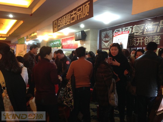 2014年,2月22日,伴随人们回到各自工作岗位各类市场活动也陆续恢复。安徽淮南“马上装新家”团购会在淮南万行国际大酒店召开,集成吊顶领先品牌,今顶复古吊顶则由淮南今顶为代表出席参加。这次团购会还囊括了:客来福衣柜、美大集成灶、惠尔地板、扬子木门、绿森林硅藻泥等众多品牌参与。淮南今顶为了使大量现场业主能观了解今顶复古吊顶的产品魅力也是大显身手,应用熟悉的产品知识、熟练的方案交流使很多业主下单到今顶复古吊顶,淮南今顶通过自己的努力不仅得到了业主们的认可也收获了大量的产品订单。