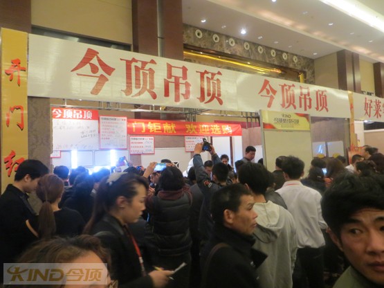 2014年三月2日烟台今顶代表今顶公司参加了烟台“开门红开春家居建材团拜会!”。本次团拜会参与品牌有:今顶复古吊顶、德贝橱柜、国美照明、好莱客衣柜、伊莎莱布艺、好美家地板、法恩莎卫浴等。这一次团拜会通过现场砍价,砍价师代表到场业主与商家进行砍价。今顶凭借过人的实力吸引到场业主到今顶展位,直接导致了今顶展位的爆棚奇效!