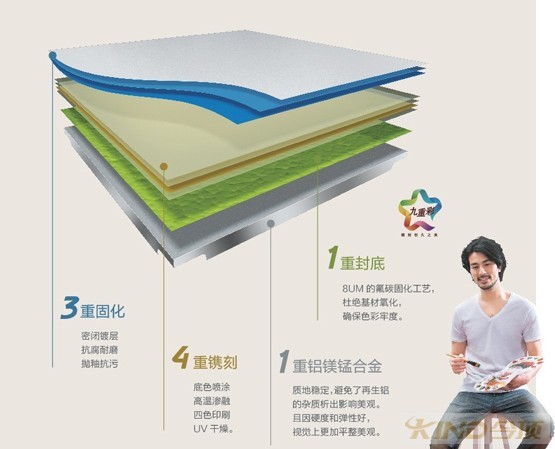 一重封底:8UM的氟碳固化工艺,杜绝基材氧化,确保色彩牢度。