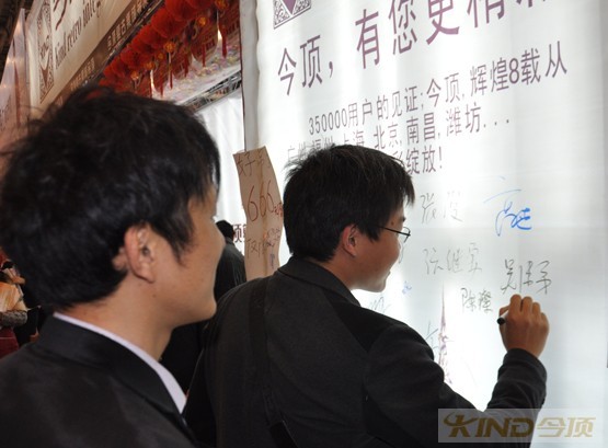 2014年3月14日,“今顶,有您更精彩”又在“2014合肥春季家博会”上精彩呈现。今顶复古吊顶和合肥今顶的精英团队都是“合肥春季家居建材博览会”的老朋友了,在现场,合肥今顶展现了我们优秀的团队、品牌的魅力、产品的品质、风格的组合、金色服务!每一次激动人心的抽奖,每一次恋恋不舍的合影留念,每一次金灿灿肯定的微笑,太多太多的每一次,都深深的感动着到场的每一位顾客和今顶的精英家人,千言万语都无以表达,唯有“今顶,有您更精彩”!