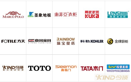 中国好家居品牌阵营(排名不分先后):马可波罗瓷砖、圣象地板、索菲亚衣柜、顾家家居、朗斯淋浴房、方太厨电、意风家具、瑞宝壁纸、科勒厨卫、金牌橱柜、今顶复古吊顶、TOTO、喜临门寝具、TATA木门、松堡王国儿童家具。