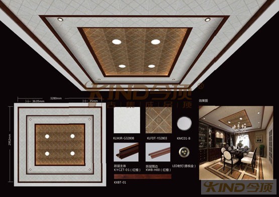 特别值得一提的是:2014年今顶创造性的将传统的横梁与边条进行改造提升,开发出 “灵动空间”系列跃层系统,通过对跃层主体的结构重组营造出“随心白搭”、“自由组合”。 从有限的空间索取更大的空间,通过高低错致的设计,达到一种落差的视觉效应,让吊顶展现出平顶而起的气势,顶天立地的气概,衬托出家居吊顶的奢华。