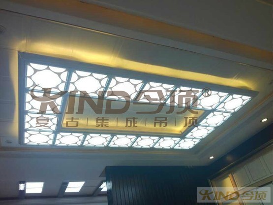 具有复古韵味的欧式书房吊顶设计在空间错层结构的营造上门下足了功夫。欧式典雅纹理的“再创辉煌”搭配大面积典雅金色的“白金汉宫”系列产品,将欧式奢华典雅的气质进行完美演绎。四周搭配浅白色系的板材,在追求古典情怀的过程中带着时尚的元素,为欧式书房设计增添不一样的体验,体现着欧式书房空间的浪漫典雅的复古情怀。