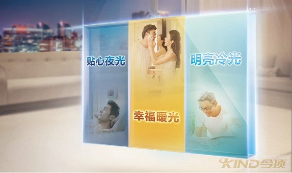 3、如果不想特意设置小夜灯,可以选择兼顾常规照明的LED。今顶“三彩”LED兼顾6000K色温明亮冷光、4000K色温温暖黄光,满足普通需求之外,还具有1W模式的夜灯功能,不仅方便起夜,柔和的光线也有助于促进睡眠。