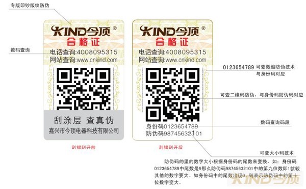 3) 网站查询: 登陆公司官网www.cnkind.com ,在相应的“防伪查询”栏内进行防伪查询。