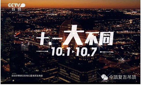 10月1日-10月7日,红星美凯龙“十一大不同”钜惠活动火热开炉,为全国消费者贡献了一次国庆购物的狂欢节。今顶作为唯一入选的集成吊顶品牌,携手红星美凯龙重磅登陆央视黄金档广告时段。