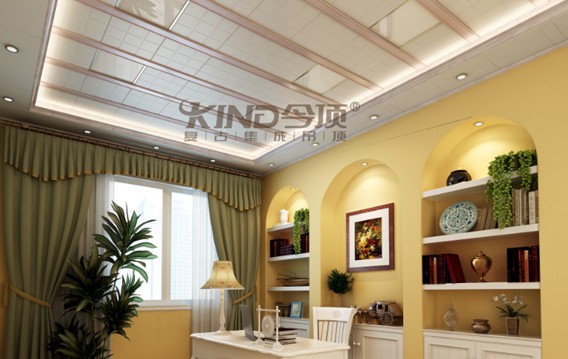 文不盖武,眼见为实,下面就让我们欣赏一组书房格局,来自集成吊顶领先品牌之一的今顶复古集成吊顶为我们呈现书房吊顶的完美邂逅