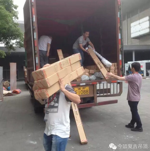 这是一群低调而又高效的团队,搭建第二天“复古吊顶生活馆”的外观搭建已经初步完成。与展馆内的分秒必争相比,位于展馆外卸货区的产品安装团队,则显得有条不紊。精细地切割型材,缜密的框架组合,细致的扣板安装,大到整个展馆施工调度,小到每片扣板的拆箱撕膜,每一个人都已最用心的态度,力求将展出产品以最完美的姿态呈现在参观者眼前。