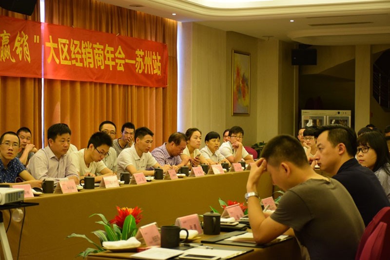 紧接着,销售部李总监围绕着单店业绩倍增及门店盈利系统进行深入解析。会议的最后,江苏、山东地区全体经销商进行8月“万人抢工厂”主题促销活动仪式。至此,2015大区经销商年会【苏州站】现场会议完美落幕。