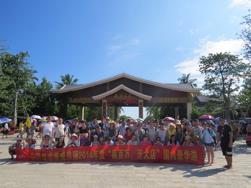 本次团队活动,围绕着“赢百万,开大店”的激励宗旨,为了奖励优秀代理商2014年度优异的成绩,对三亚诸多著名旅游景点的参观和游玩。旨在增加彼此之间的友谊,增强代理商间的交流沟通。也让大家放松身心,开阔眼界,思想敏捷,以便在未来一年做出最优异的成绩!