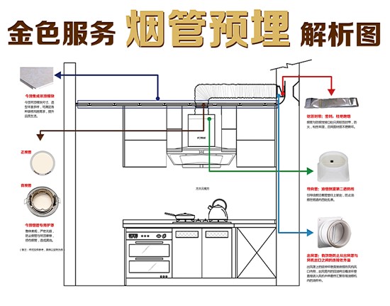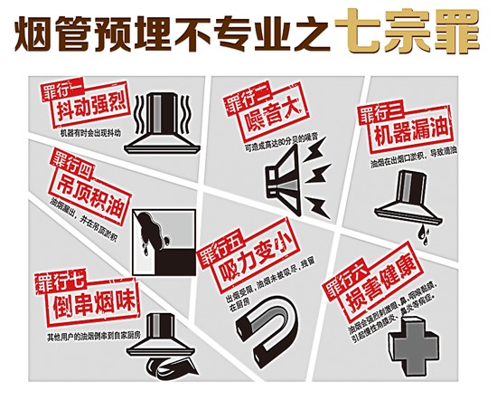 据不完全统计60%以上关于油烟机的问题,特别是新装用户的烟机问题其实是烟管没有预埋或预埋不专业造成的!烟管没埋好容易导致以下问题:吸油烟机吸力小;机器运行时噪音大;机器抖动厉害;使用一段时间后产生漏油现象;公用烟道倒烟串味;吊顶上橱柜内积油;油烟大,影响身体健康。啊?那么严重啊!那该怎么办呢?
