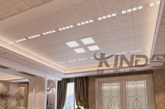 今顶集成吊顶——匠芯LED灯,LED面光源设计,增大发光面积,防眩光降低视觉疲劳!灯下看书眼睛不会干涩难受!对室内造成的“光污染”影响小,居室内可多采用此类光源。