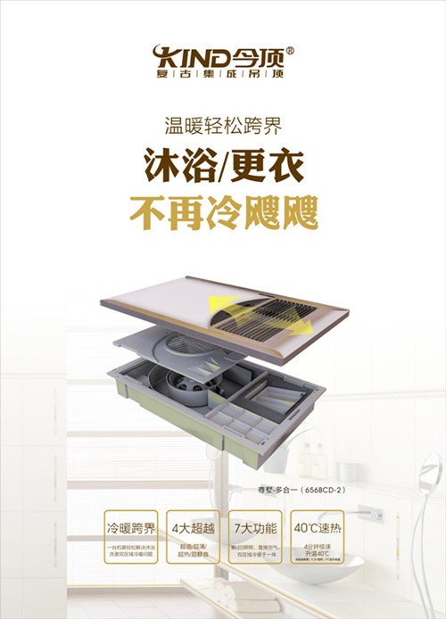 在刚刚落幕的2015年度集成家居影响力年会中,今顶复古集成吊顶尊墅多功能电器凭借其颠覆性的“双区域共冷暖”功能一举夺魁,入选“2015年度中国集成吊顶行业十大新品”!据悉,该款尊墅多合一电器一台主机即可实现“LED照明、置换空气、干房暖风、沐浴区冷暖风、洗漱区冷暖风”等七大功能,通过国际领先一键切换“旋转风门”专有技术,能够解决沐浴区和洗漱区两个区域的冷暖问题,方便切换,真可谓是“一台更比7台强”!