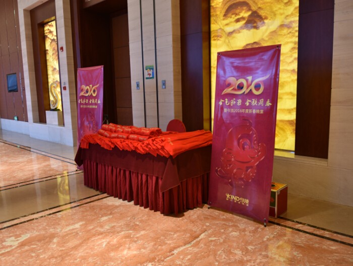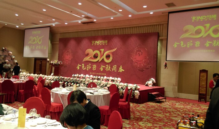 在今顶工作人员的努力下,年会精致的舞台渐渐地展现在我们的眼前。全体今顶家人也在领导的红色围巾关怀下,秩序井然的进场!