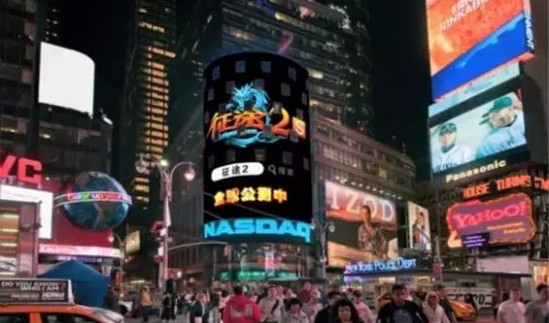 带有强烈“史氏”风格的《征途2S》广告片登录美国城市地标纽约时代广场,成为中国首个登上世界舞台的网络游戏。