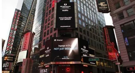 2014年12月11日,华为荣耀年度旗舰手机--荣耀6Plus广告片相纽约时代广场,其广告标语则是颇为耐人寻味的"NotJust Bigger",这被解读为其将向iPhone 6