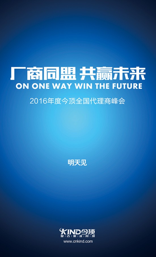 今顶集成吊顶以“厂商同盟,共赢未来”为主题的2016年代理商峰会,将于明天在嘉兴富悦大酒店正式召开!届时,全国的今顶集成吊顶代理商将聚焦嘉兴,共享今顶集成吊顶财富盛宴!感谢代理商长期以来对今顶的信任,今顶集成吊顶自创办至今才能茁壮成长!我们,明天见!