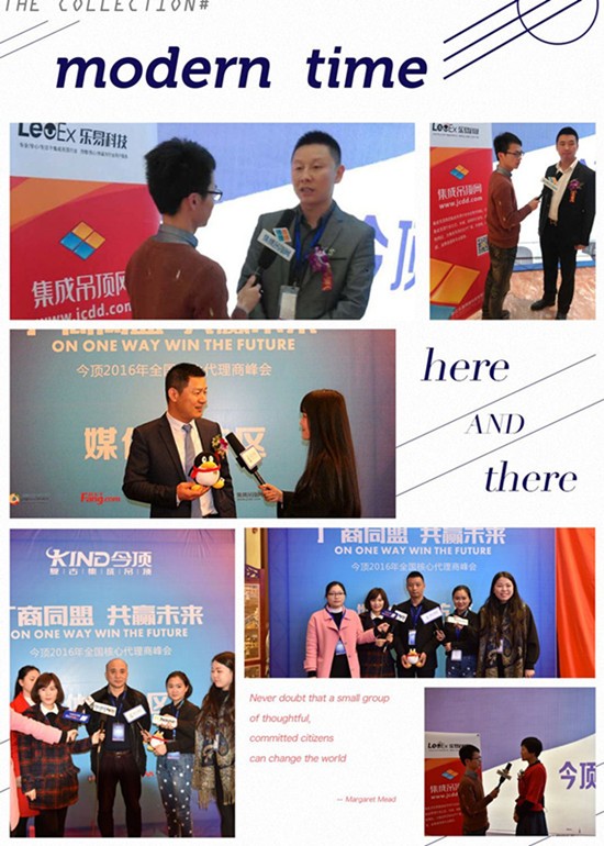 复古吊顶品牌深入人心,展会现场数10家近30人组成的超豪华主流媒体阵容争相报道。此次代理商大会媒体阵容可谓强大,现场媒体的专访,让今顶集成吊顶品牌热度持续升温。