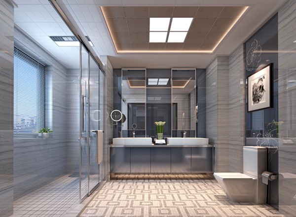简约空间的浴室通过白色扣板营造一种干爽洁净的感觉。干湿分离的设计,配上中央区域双彩LED照明的运用,令让整个空间给人一种柔和的明亮洁净感受。