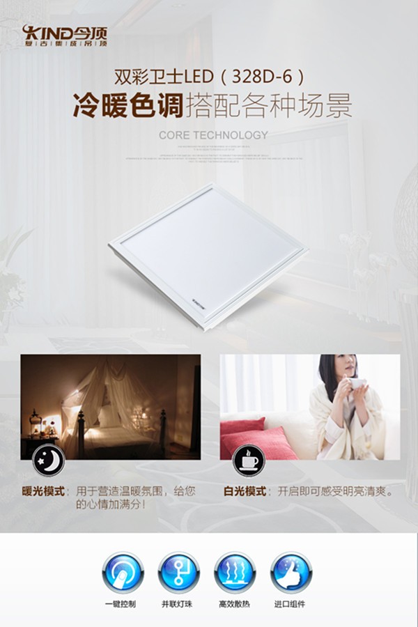 冷暖两种色调随心调节,夏天阳气生发,冷光中和协调,冬天清冷萧瑟,暖光驱走清冷。任窗外四季流转,双彩卫士,一键切换灯光,给您的心情加满分。