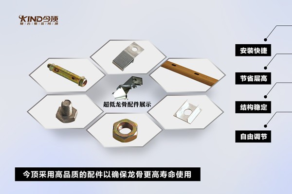 龙骨是指用轻钢做成,用于天花吊顶的主材料,它通过螺杆与楼板相接,用来固定天花或者物体。普通的集成吊顶安装所需的龙骨会占用大量的顶部空间,对于很多用户既要吊顶有立体感,又要做很多奢华的造型,在有限的房间层高里很难满足用户的需求。