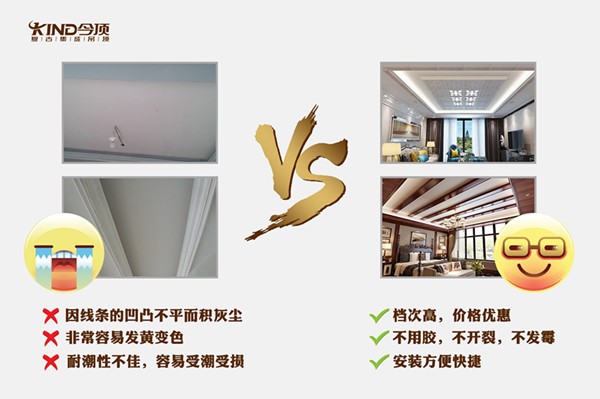 虽然石膏线吊顶的缺点不少,但无论我们怎样费尽口舌,说尽集成吊顶的各种优势,但是总有一部分固执的人对“石膏吊顶”情有独钟!