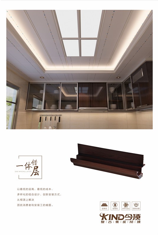 以最低的层高,最低的成本、多样化的组合设计、创新安装方式,从根源上解决困扰消费者和安装工的难题。今顶“微错层”、“一体错层”以成本低,空间低,安装快的优点,迅速向集成吊顶行业全屋吊顶蔓延。