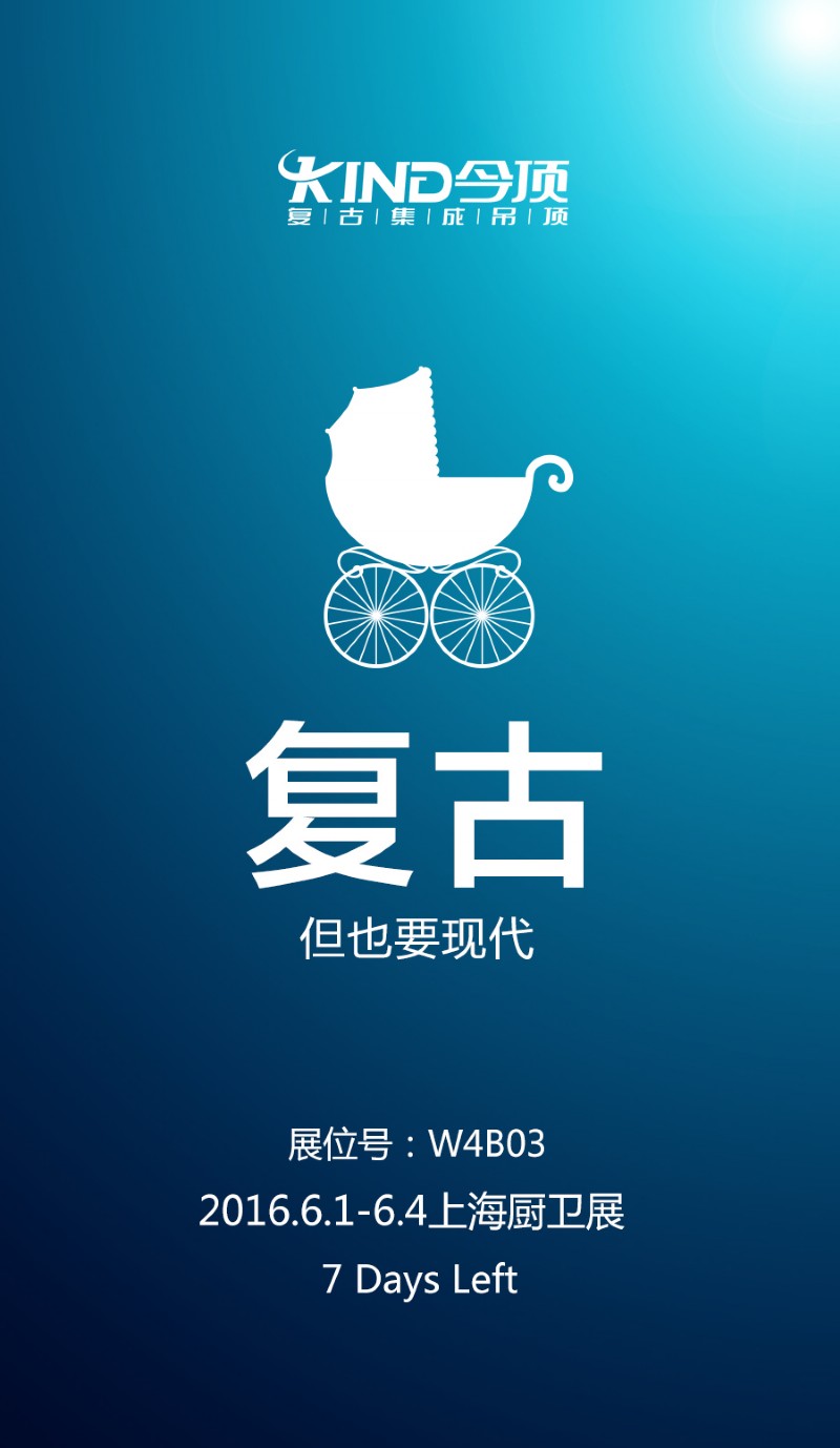 6月1日-6月4日,2016年第21届中国(上海)国际厨房、卫浴设施展览会,今顶集成吊顶重金打造的今顶集成吊顶生活馆即将激情揭幕。多款新品,全新创意,史诗巨作,复古吊顶与现代审美的巅峰碰撞,亦是智能家居潮流中最诚意之作。