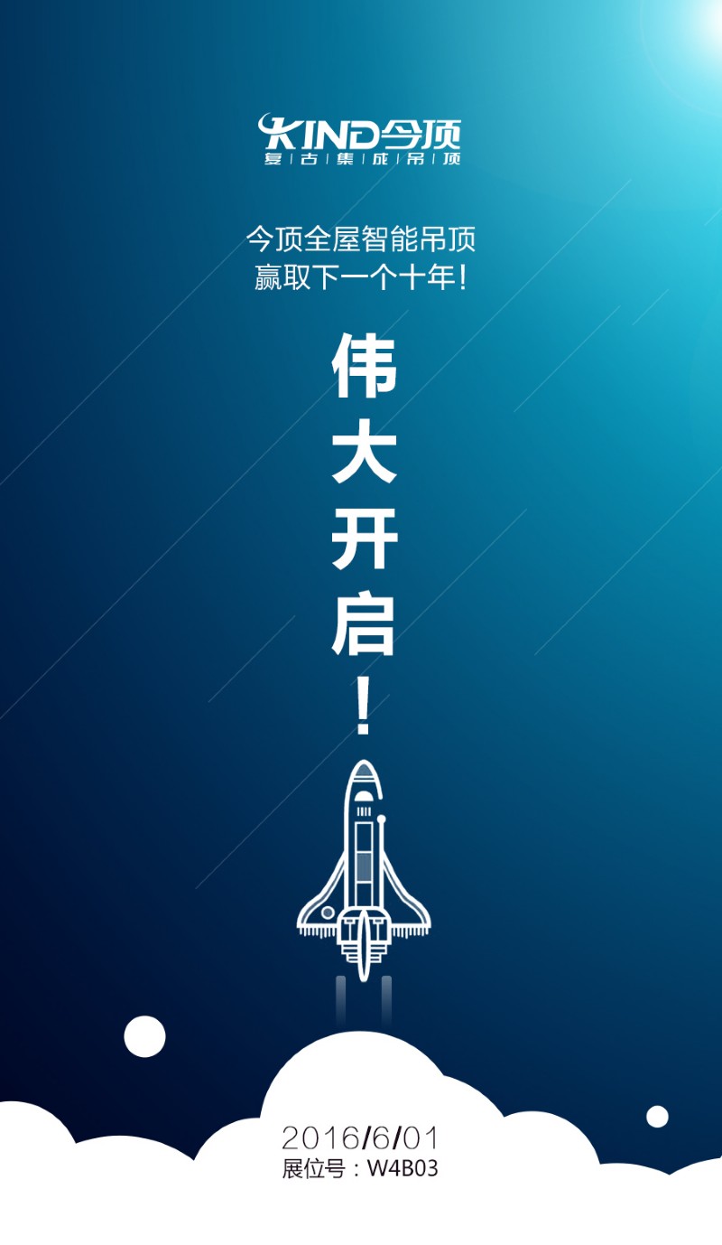 今顶全屋智能吊顶参展“第21届中国(上海)国际厨房、卫浴设施展览会”,展会时间为2016年6月1日-6月4日,展会地点为“上海新国际博览中心”,在此,我们诚挚邀请社会各界朋友莅临今顶全屋智能吊顶生活馆展位(W4B03)参观指导,共襄盛举!