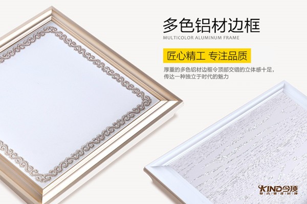 高科技、高性能的滚涂工艺,让扣板表面颜色均匀细腻,还原色彩本真,耐腐蚀、耐紫外线、高强度等优势尽显。使用高端氧化工艺,环保无毒、防火、抗紫外线,色彩均匀一致,让每一块板材都散发出不同寻常的金属质感。丝印工艺更是集滚涂、氧化所有优势,让扣板表面更加清晰逼真,创造出美轮美奂的图纹。今顶独创的镶嵌工艺,荣获国家外观专利产品奖!将扣板与高分子材料等装饰性元素完美结合,打造极具立体视觉效果的全新产品。