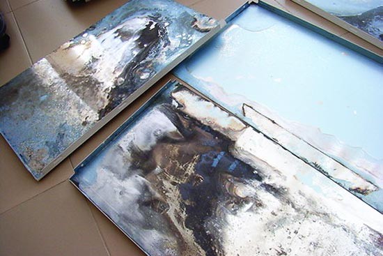 光鲜明亮的铝扣板使用不到一年就变色了,看着锈迹斑斑的铝扣板,你或许还在纳闷:铝也会生锈吗?可以肯定的告诉你,你被骗人了,这些都是无良商家为牟取暴利在材料上以次充好。厨房和卫生间湿度较大,过两三年就会生锈出问题。
