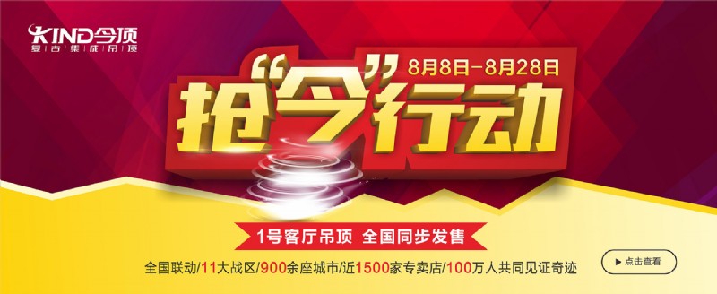 今顶集成吊顶已于2016年8月8日在全国范围内开启抢今行动: