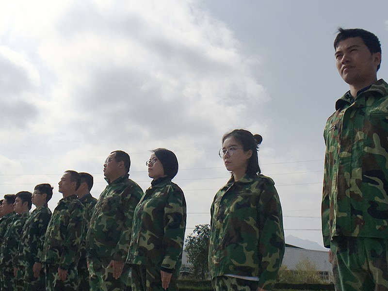 27日,早晨8点整,我们整装待发前往临安千年古镇——龙岗镇,一路上,大家欢声笑语,其乐融融,喜欢唱歌的同事也给大家奉献了精彩的歌曲。在一片欢歌笑语声中,大家抵达此行的第一站——龙都大酒店。稍作休息,大家穿上整齐的迷彩作训服,个个精神抖擞,激情澎湃!此行的第一个拓展培训“破冰行动”也正式拉开帷幕。