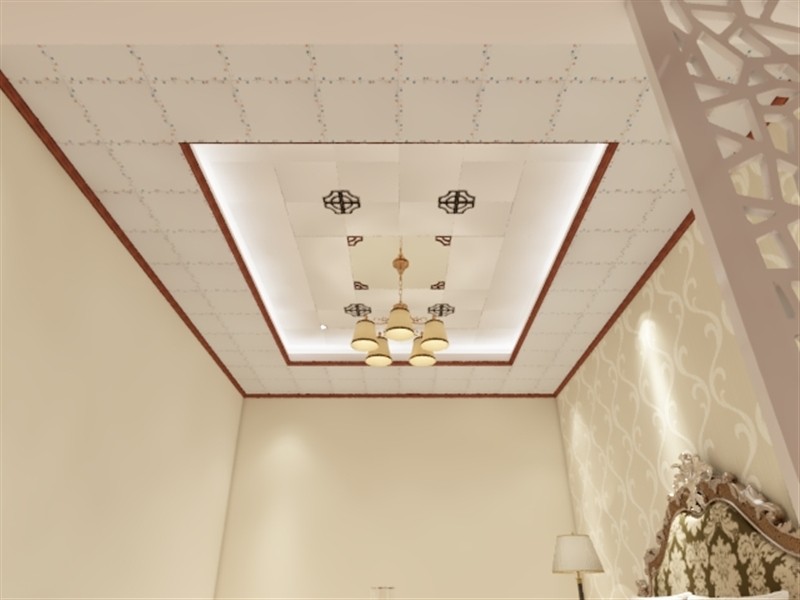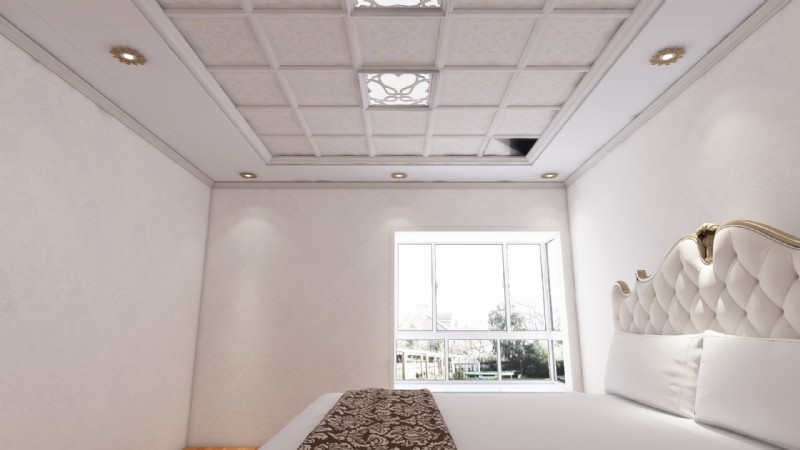 单调,床上铺块花色毯巾不失为一种对生活品质有追求的象征。雕花LED灯镶嵌板材中,给原本单一的吊顶
