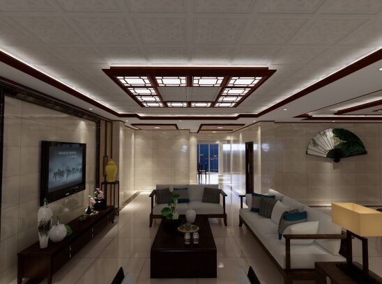 浅色暗花配合红木色方格灯,浓浓的古典气息,江南韵味。